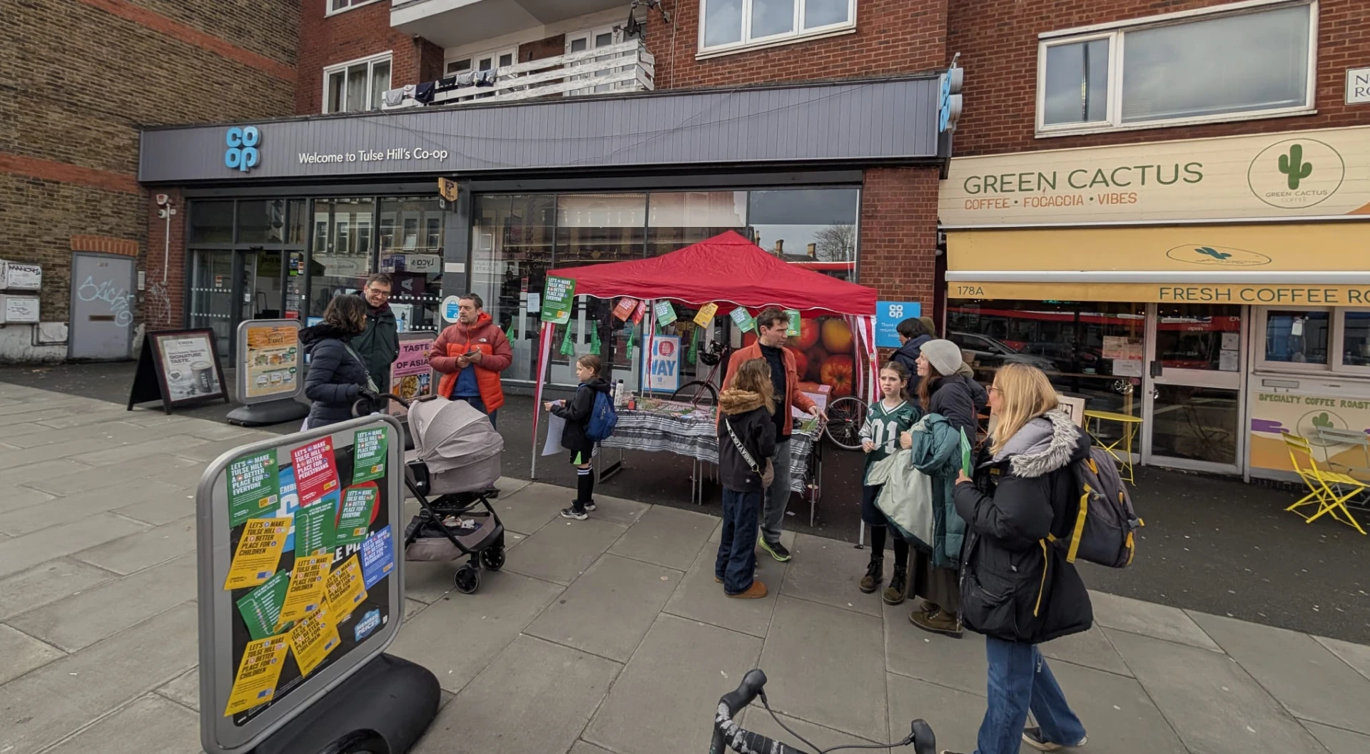 On Saturday (31st January), we held a community day outside the Co-op at Tulse Hill, where we met local residents to talk about our campaign to make Tulse Hill safer and more inviting, and to encourage people to sign our petition to the Mayor of London and Transport for London.